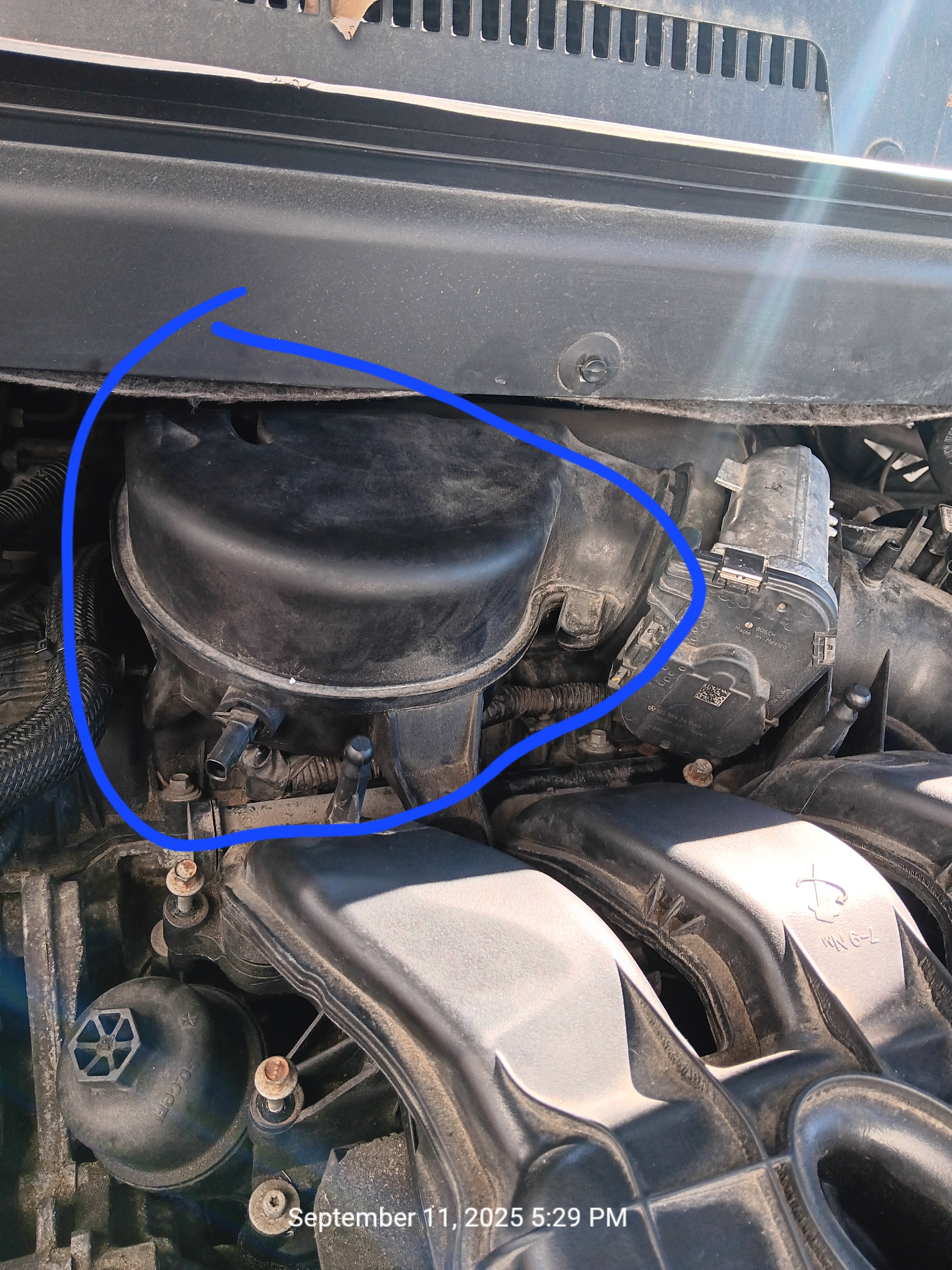 3. Hey everyone, I'm changing an ignition coil, but cannot remove THIS thing. I'm told there are two screws behind it. Can't find them- even with light and mirror. It would help to know what this thing is called. I've spent 45 minutes online trying to find out what it's called so I can find pics and visually see the screw holes. I'm stuck and stopped at this point. VEHICLE: 2019 DJ Crossroad AWD 3.6L BACKGROUND: Spark plugs were changed this week. (apparently previous owner(s) never changed them - worst I've ever seen). Due to the insane method of changing them, I paid a local mechanic to change them for me. Now, I need to change a coil #5 (P0305). I can't pay him for all that again, so I'm doing myself. I'm a basic car guy, but I'm cussing out the engineers on this one. TLDR: I need to know name of this part, especially to VISUALLY find out back screws location I'll need to feel for in order to change an ignition coil. Thanks in advance!